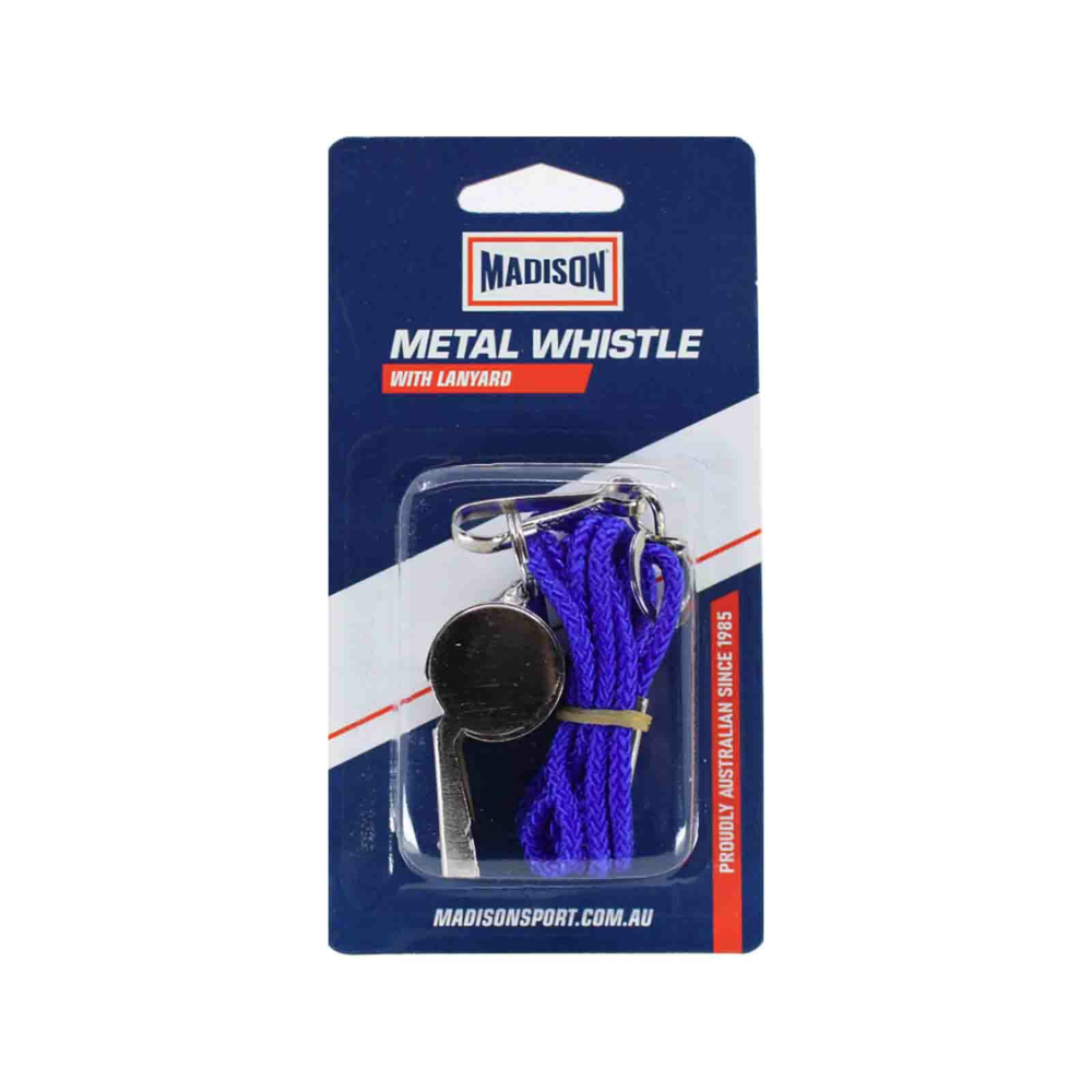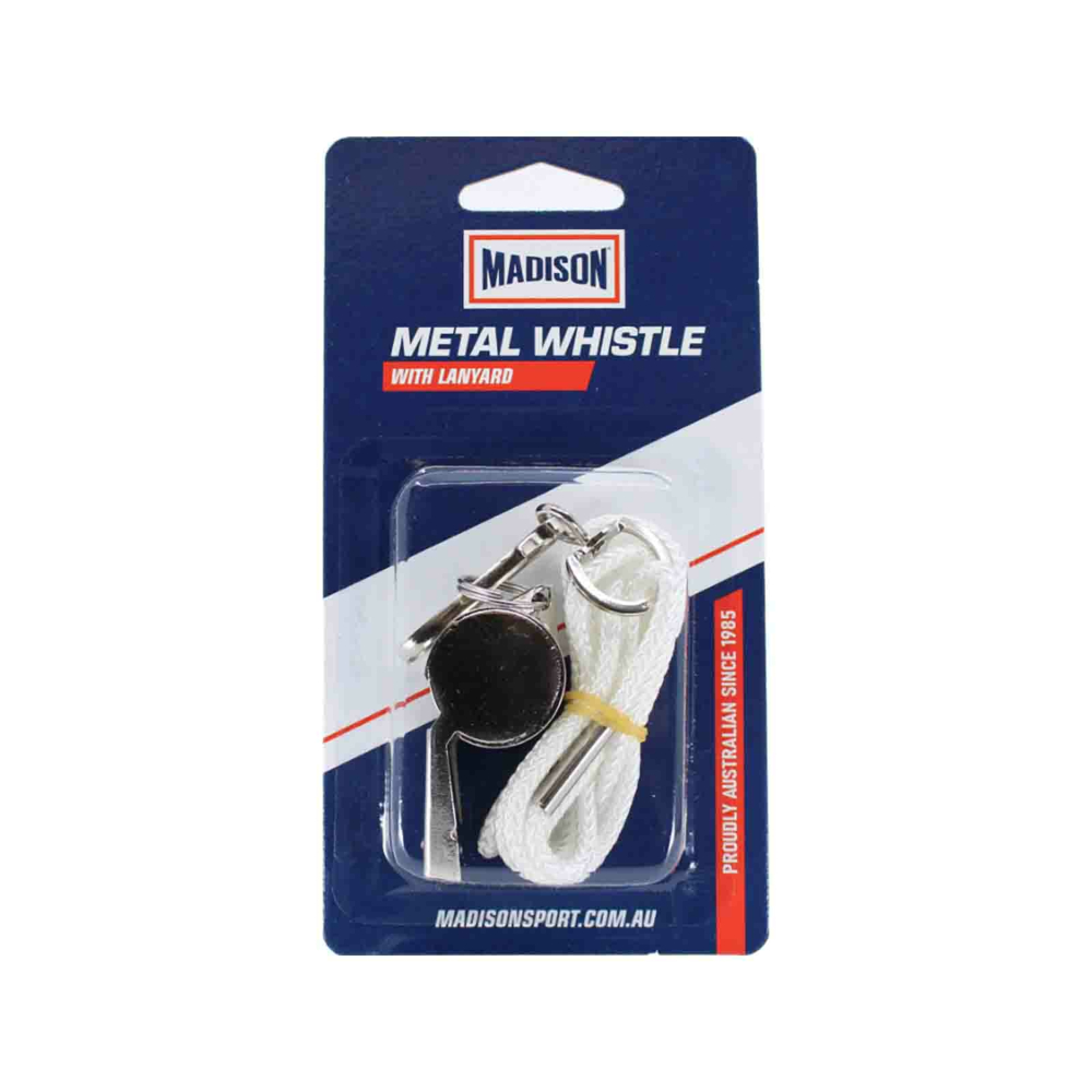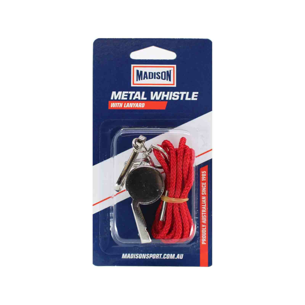 The Madison Metal Whistle with Lanyard is an entry-level coaching and referee whistle made of chrome-plated metal. Ideal for coaching and educational use.