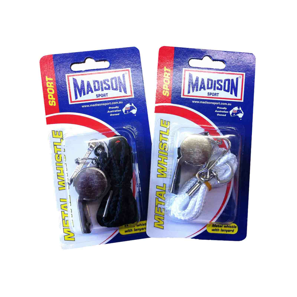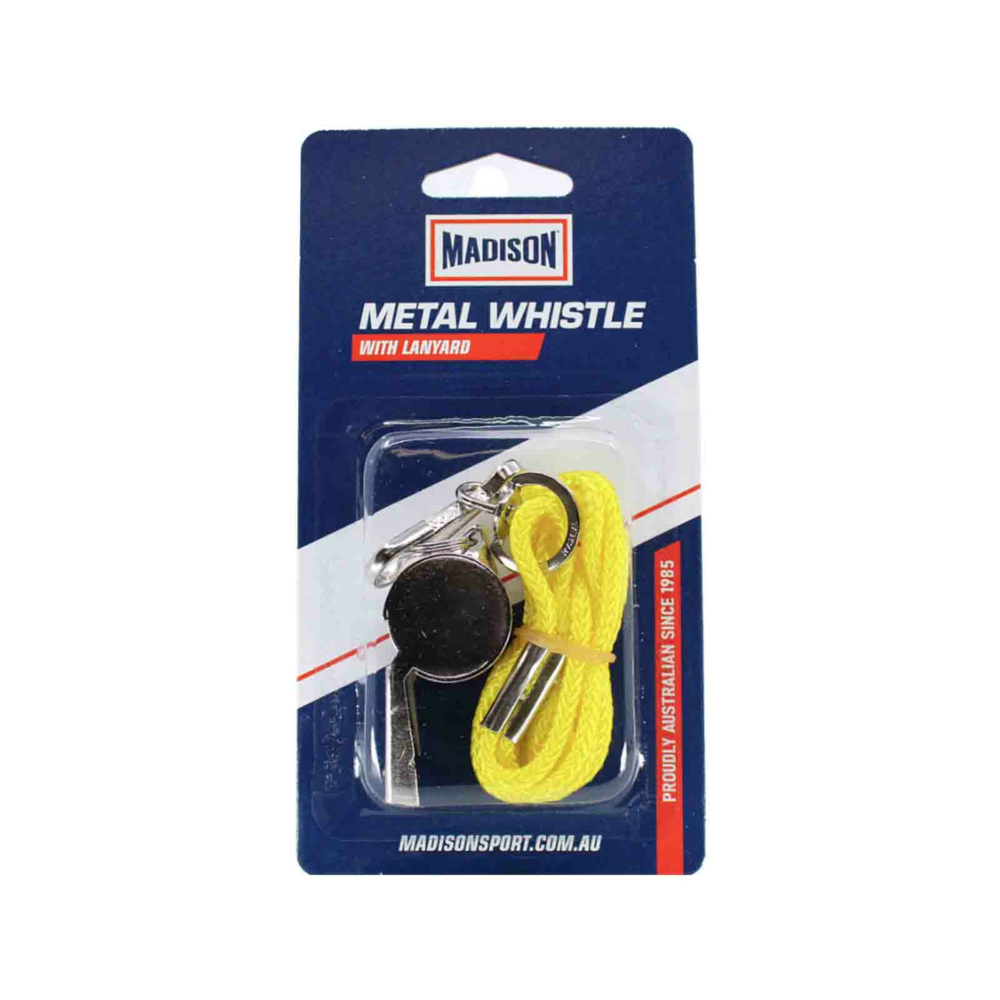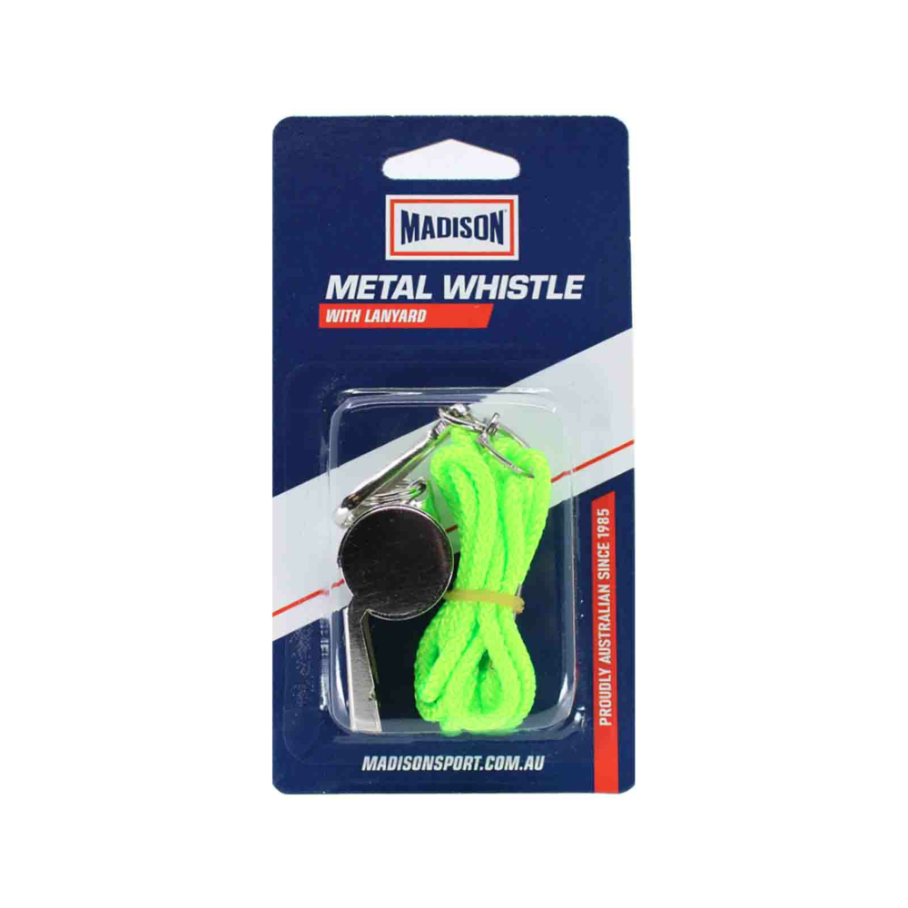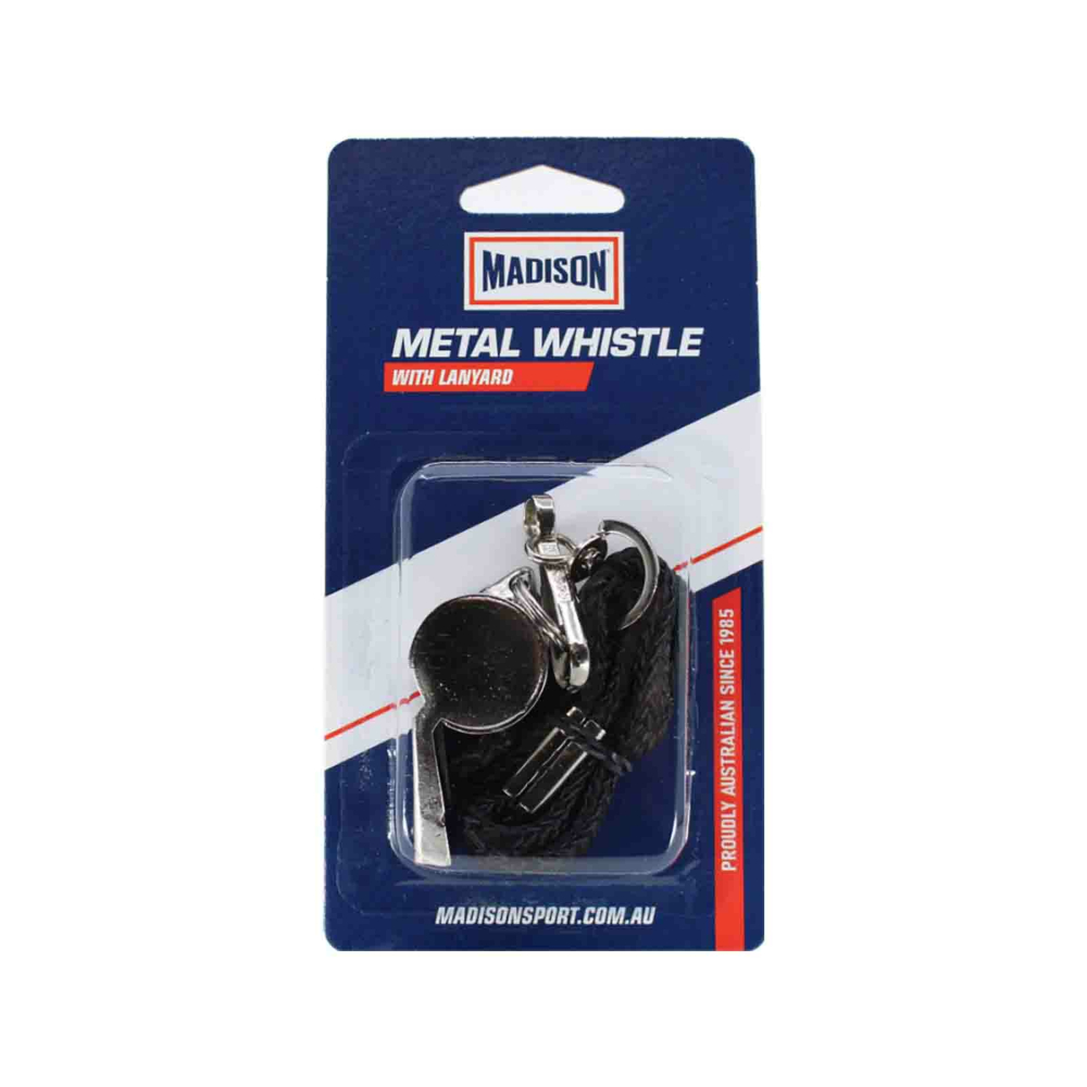 The Madison Metal Whistle with Lanyard is an entry-level coaching and referee whistle made of chrome-plated metal. Ideal for coaching and educational use.