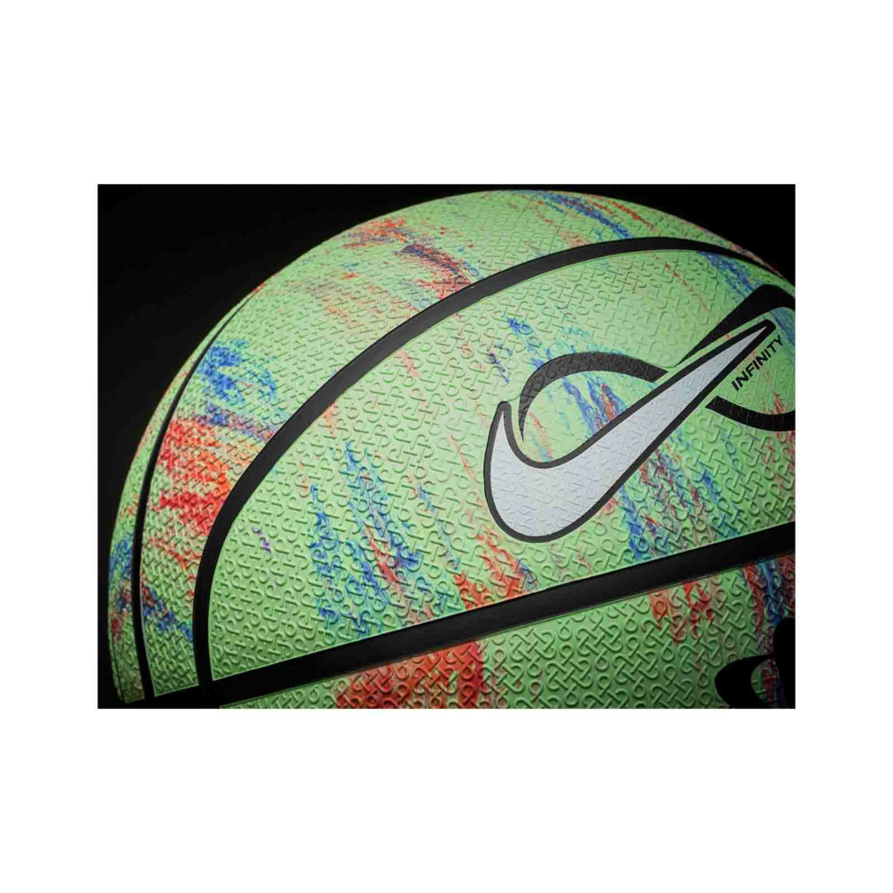 Move To Zero is Nike's journey toward zero carbon and zero waste to help protect the future of sport. Also displaying the Pinwheel as the brand marker for Nike Sustainability, the Infinity Next Nature Basketball is made from 50% recycled content by weight.